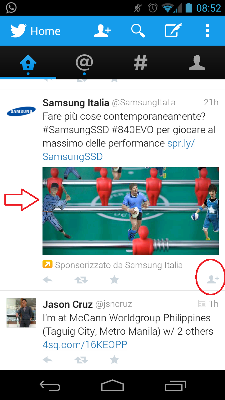 Inoltre sarà più facile ampliare i propri contatti e quindi il ReTweet acquisirà maggior peso, più di quanto già non ne abbia. Infatti con la possibilità di “seguire” una persona o un brand direttamente dal tweet (come si vede nel cerchio rosso dell’immagine) si risparmierà un passaggio e d’istinto, se qualcosa ci avrà colpito, sarà più facile premere il tasto follow.
