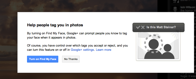 Da qualche giorno su Google+ è attiva una nuova funzione: “Find My Face” è il nome, si traduce nel riconoscimento facciale nelle foto e nell’inserimento di tag automatici, senza l’autorizzazione degli utenti, all’interno delle stesse.