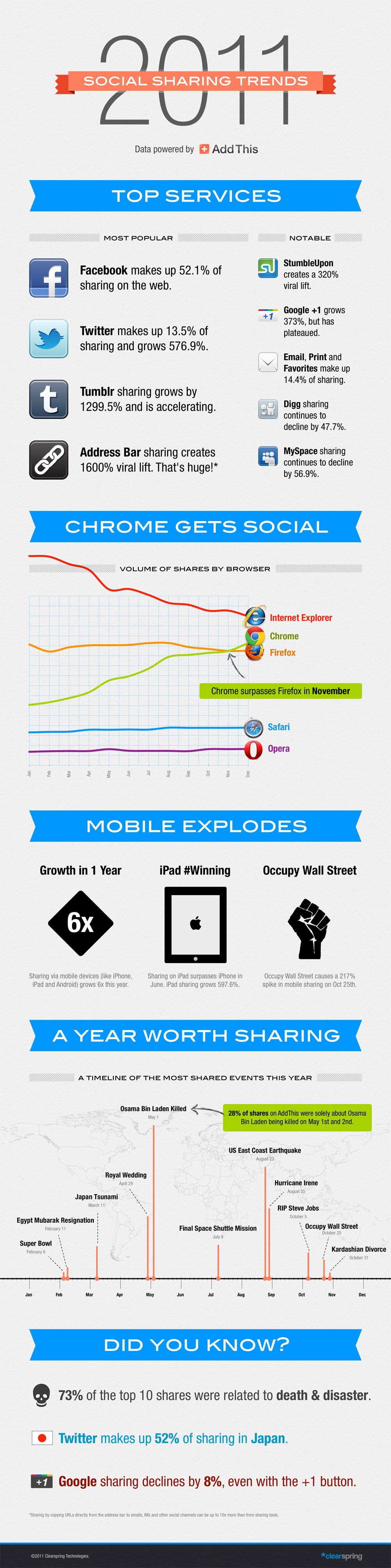 AddThis, piattaforma di condivisione online, ha elaborato di recente alcuni dati riguardanti le tendenze di condivisione sui social network in questo 2011.