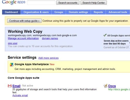 Avrete dunque accesso alla Dashboard di Google Apps for Business e da qui potrete scegliere se procedere all’installazione guidata – Express – del dominio, oppure una di tipo personalizzata.