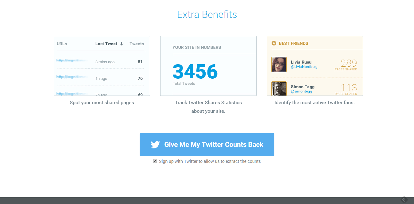 Ti presentiamo, infatti, il tool che ti permetterà di ripristinare il conteggio delle tue condivisioni Twitter: Twitter Count.