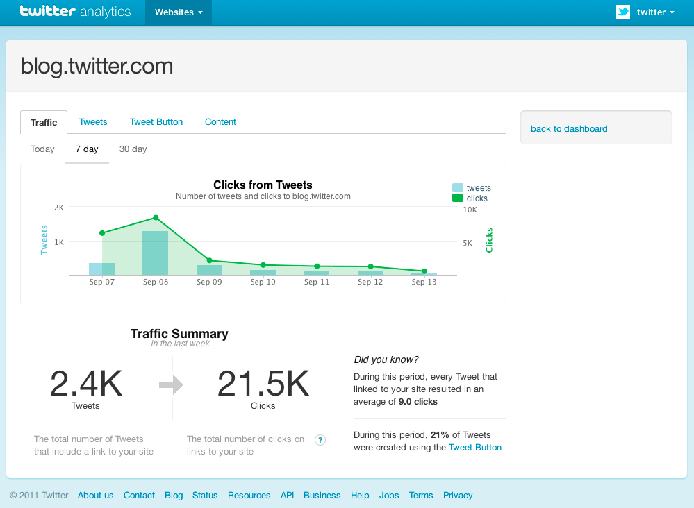 Con questo nuovo strumento, dunque, il social network aiuterà gli editori ed i proprietari dei siti web: essi potranno capire quanti dei loro contenuti vengono infatti condivisi su Twitter, la quantità di traffico creata quindi dal social e in che misura stanno influendo sulla sua strategia i bottoni posti sui suoi portali.